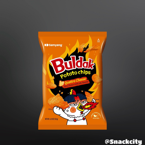Ignite a global taste invasion and be the ultimate spice-breaker with Samyang's Quattro Cheese Potato Chips!